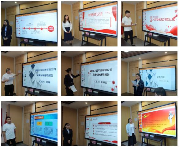 參加此次述職的擬定發(fā)展對象共9名,分別來自湖南九九智能環(huán)保股份有限公司、湖南光大仿真教學儀器有限公司、湖南人民印務有限公司、金炬實業(yè)股份有限公司、湖南華中宏泰監(jiān)測評價有限公司。