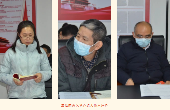 三位同志的入黨介紹人對張健、周嘉玲、胡婷三位同志在預(yù)備期中的表現(xiàn)作出評價;隨后,支部委員會黨員代表及群眾代表對張健、周嘉玲、胡婷三位同志進(jìn)行評價并提出建議,希望他們緊跟時事,加強(qiáng)黨員的自我修養(yǎng),在工作中不斷進(jìn)取,發(fā)揮黨員的榜樣作用。