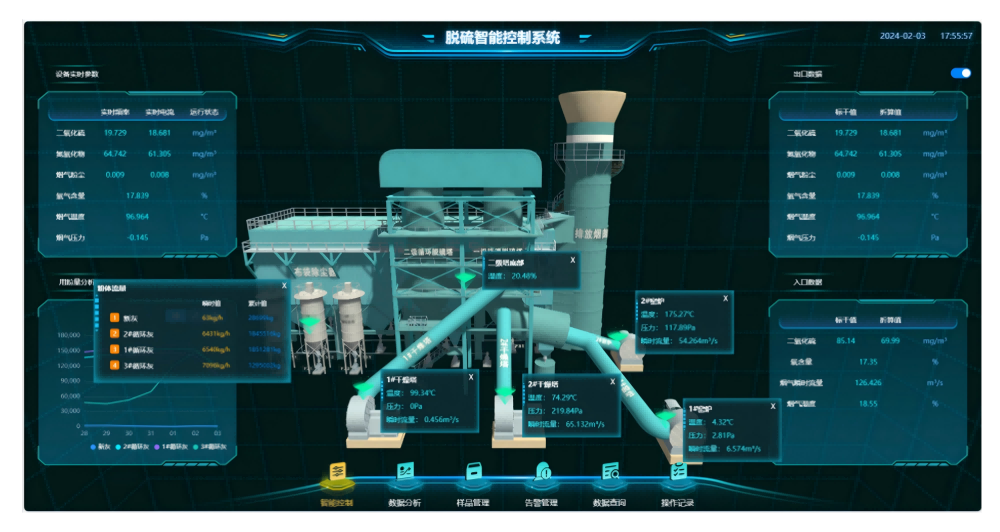 建立全面的數(shù)據(jù)采集系統(tǒng),對(duì)煙氣中的二氧化硫(SO?)、氮氧化物(NO?)、粉塵濃度、溫度、壓力等參數(shù)進(jìn)行實(shí)時(shí)監(jiān)測(cè)。利用高精度傳感器實(shí)時(shí)監(jiān)測(cè)煙氣中的硫化物(如二氧化硫SO)和氮氧化物(如氮氧化物NOx)濃度,以及溫度、壓力、濕度等關(guān)鍵參數(shù)。同時(shí),監(jiān)測(cè)脫硫劑和脫硝劑的投加量、反應(yīng)塔內(nèi)的pH值、煙氣流量等運(yùn)行參數(shù),為智能控制提供全面、準(zhǔn)確的數(shù)據(jù)支持。