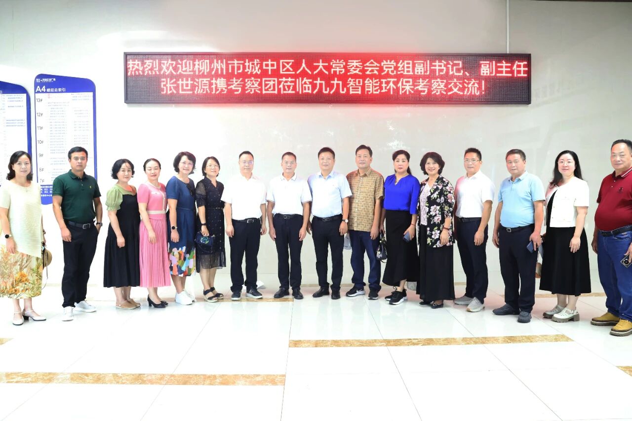 9月17日,柳州市城中區(qū)人大常委會(huì)黨組副書記、副主任、城中區(qū)總工會(huì)主席張世源率領(lǐng)相關(guān)部門領(lǐng)導(dǎo)及企業(yè)家代表蒞臨九九智能環(huán)保,開展考察交流活動(dòng),雙方就未來合作事宜進(jìn)行了深入探討。