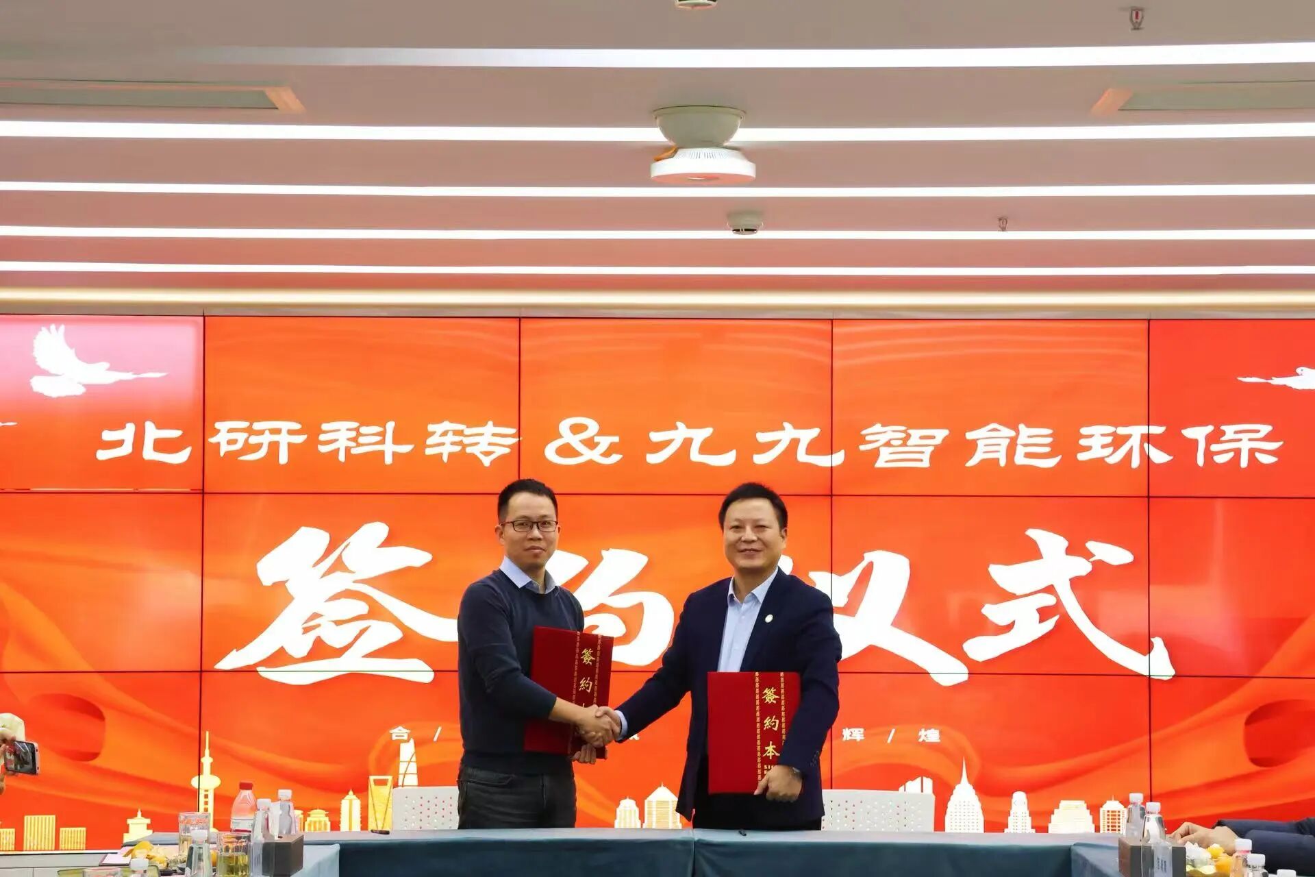 在全體嘉賓的共同見(jiàn)證下,簽約儀式正式舉行。北京大學(xué)城市軟實(shí)力研究院戰(zhàn)略合作部部長(zhǎng)、北研科轉(zhuǎn)CFO王祥,代表北研科轉(zhuǎn)與九九智能環(huán)保董事長(zhǎng)劉黎明共同簽署了聯(lián)合創(chuàng)始人戰(zhàn)略合作協(xié)議。雙方落筆定錘,標(biāo)志著雙方戰(zhàn)略合作全面正式啟動(dòng)。