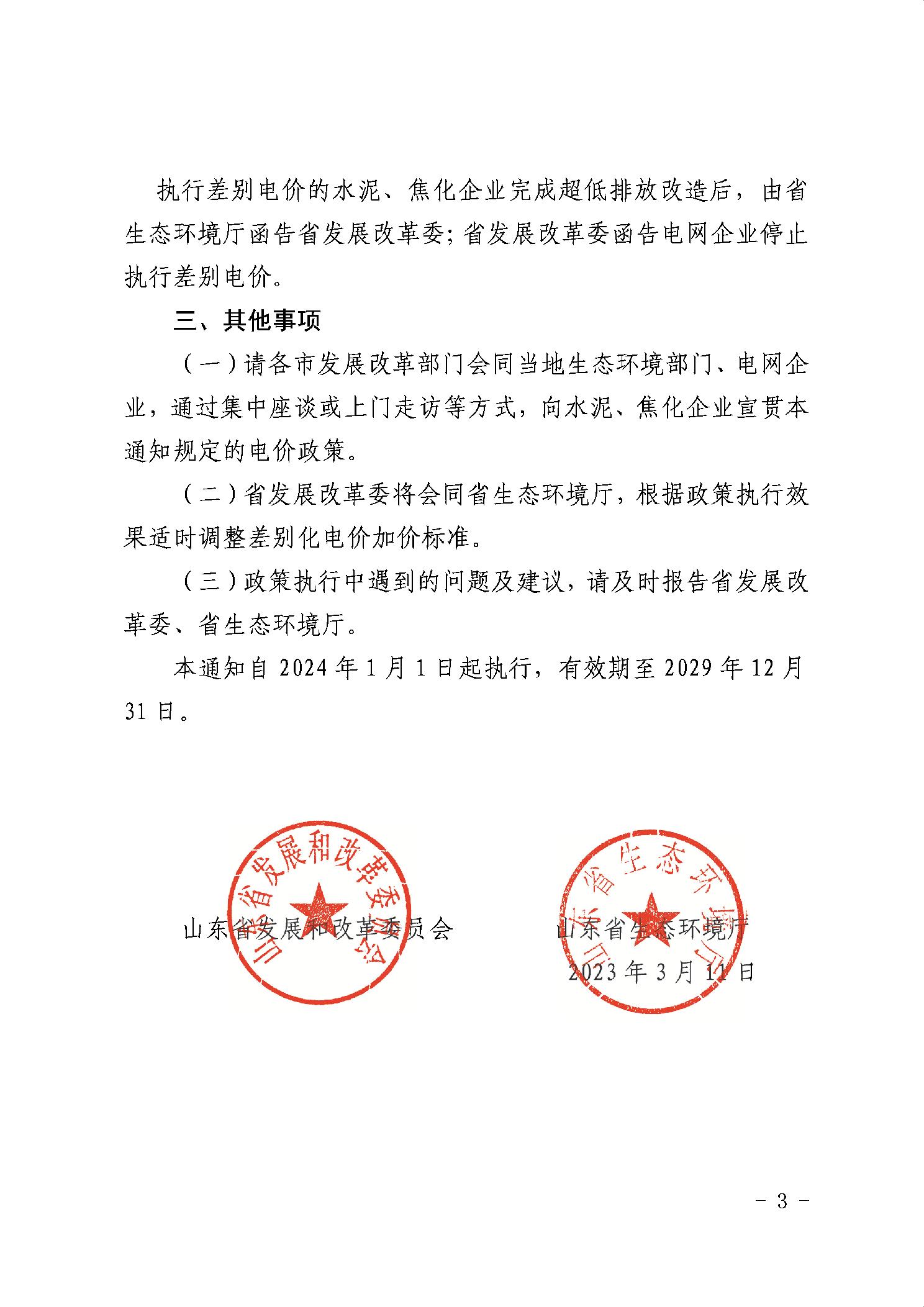 山東:2024年1月1日起 水泥焦化企業(yè)實行超低排放差別化電價政策